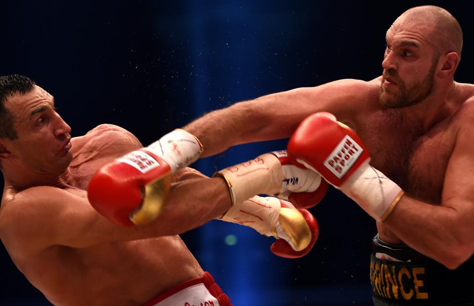 Tyson Fury, right, hasn't been in the ring since beating Wladimir Klitschko in 2015. (Photo credit by Patrik Stollarz/AFP/Getty Images)